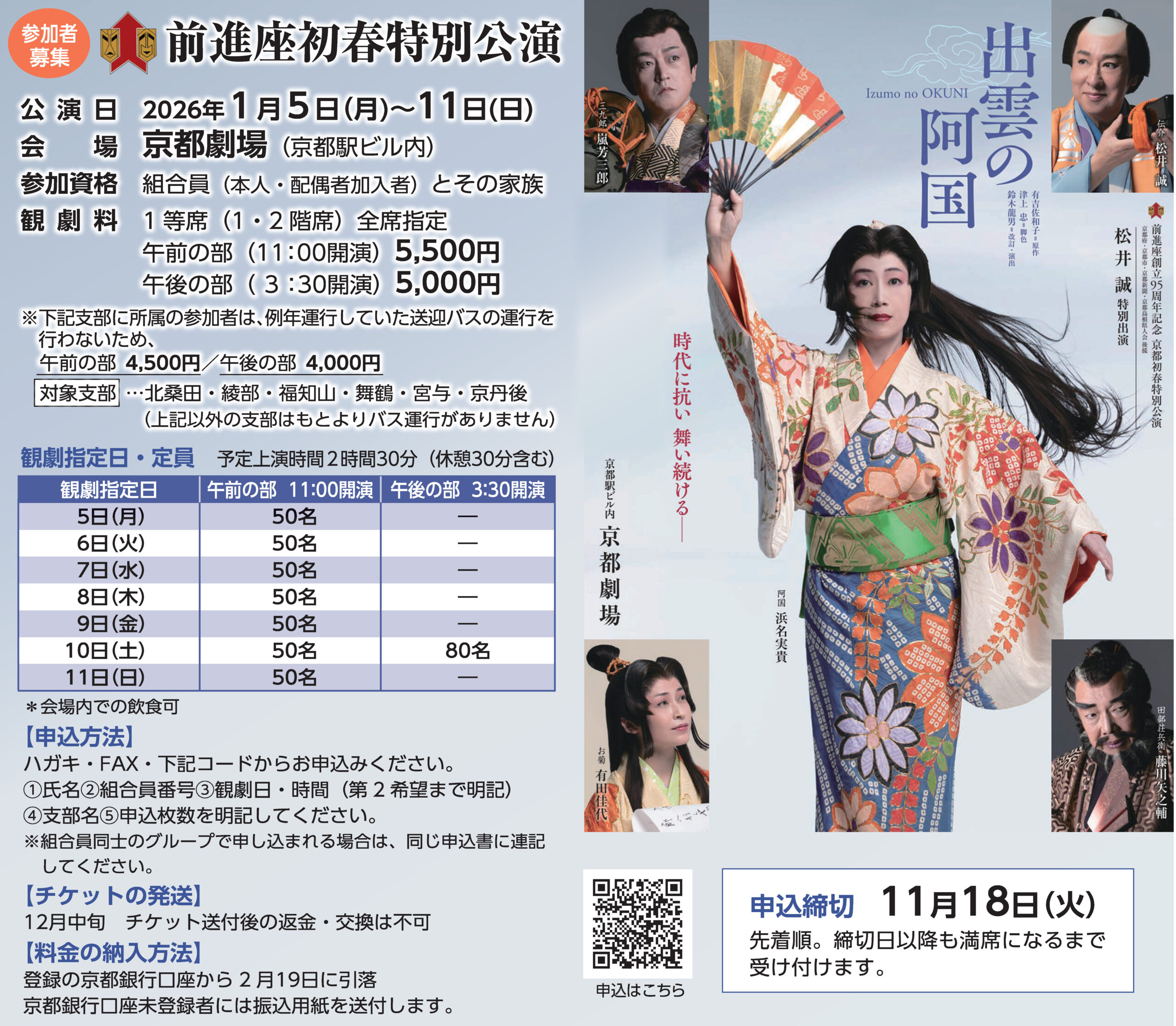 ※ (北桑田・綾部・福知山・舞鶴・宮与・京丹後)支部に所属の参加者は、送迎バスの運行を行わないため、午前の部4,500円/午後の部4,000円