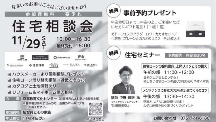 住宅セミナーのみ定員あり(予約優先・各定員20名)