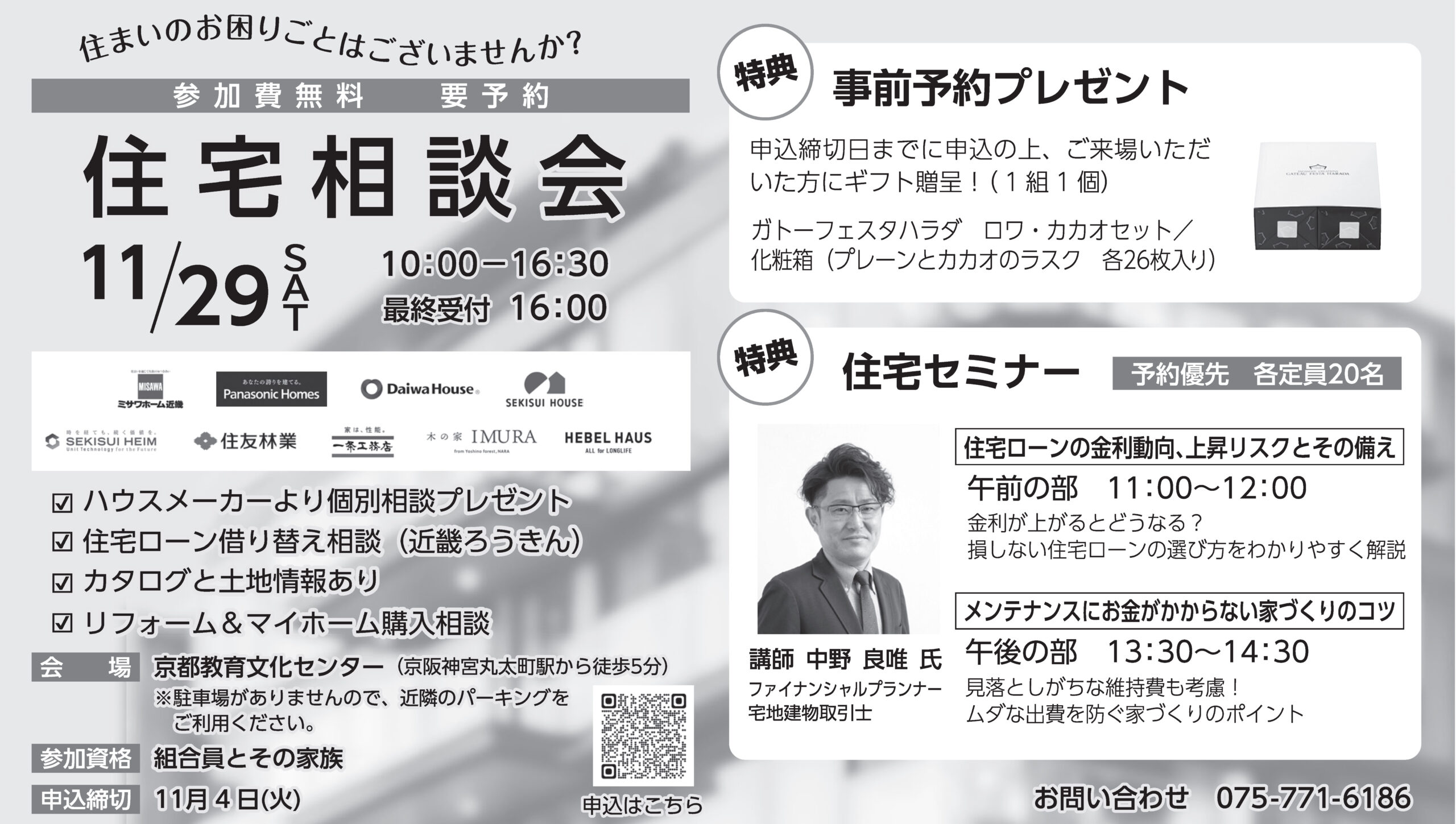 住宅セミナーのみ定員あり(予約優先・各定員20名)